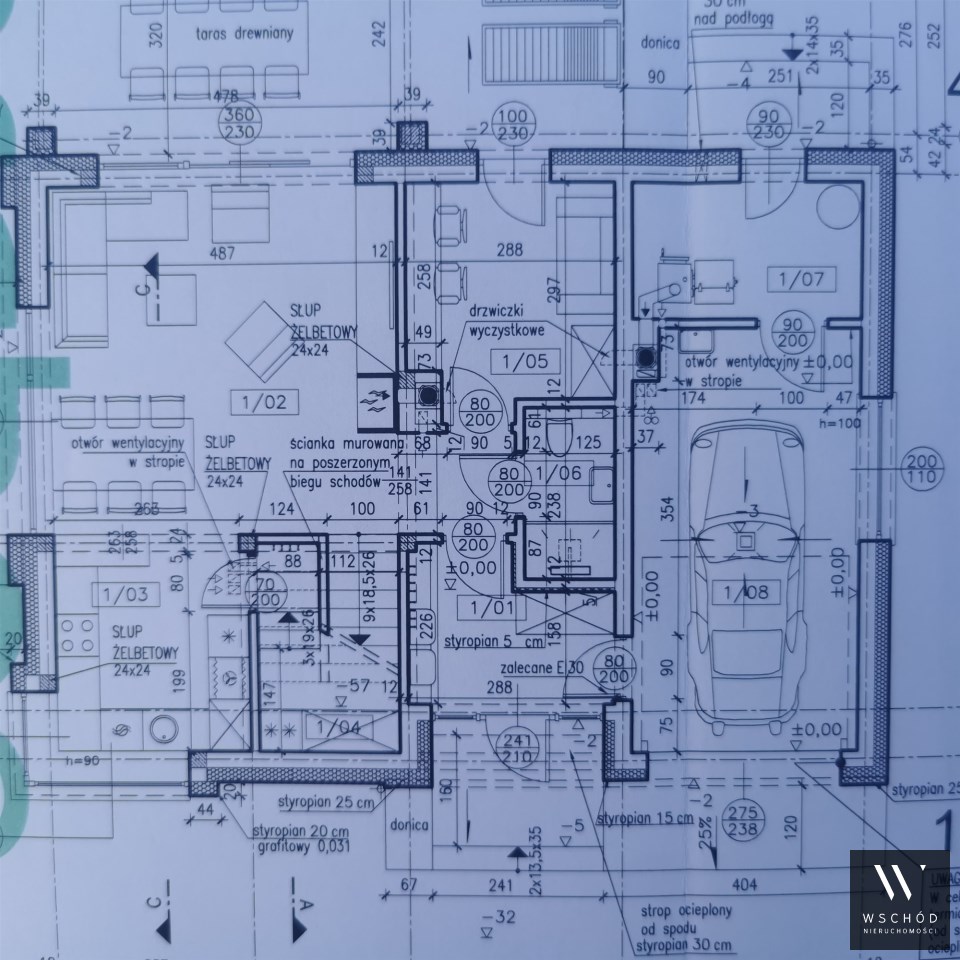 PARTER: przestronny salon z kuchnią ( z kuchni wejście do spiżarni), pokój, WC, garaż