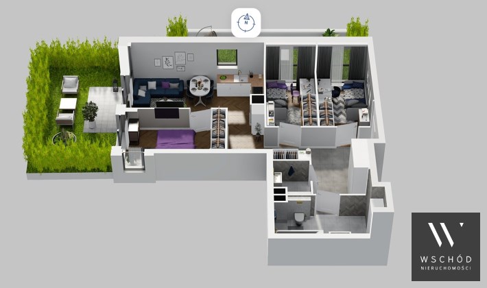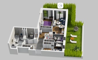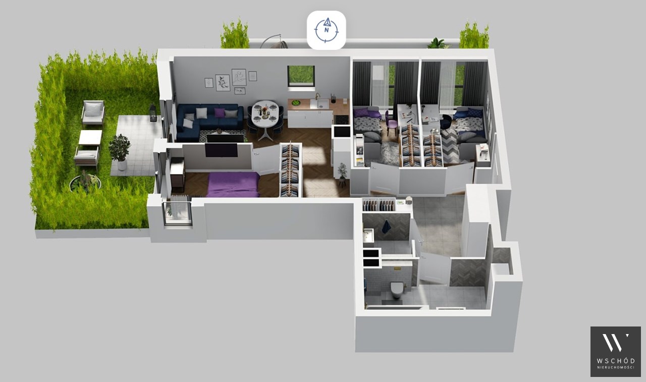 Mieszkanie składające się z salonu  z aneksem kuchennym , trzech sypialni, łazienki , WC oraz ogródka o pow. 51m2.