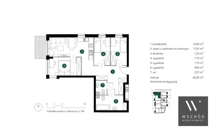 Powierzchnia użytkowa 65,05 m²