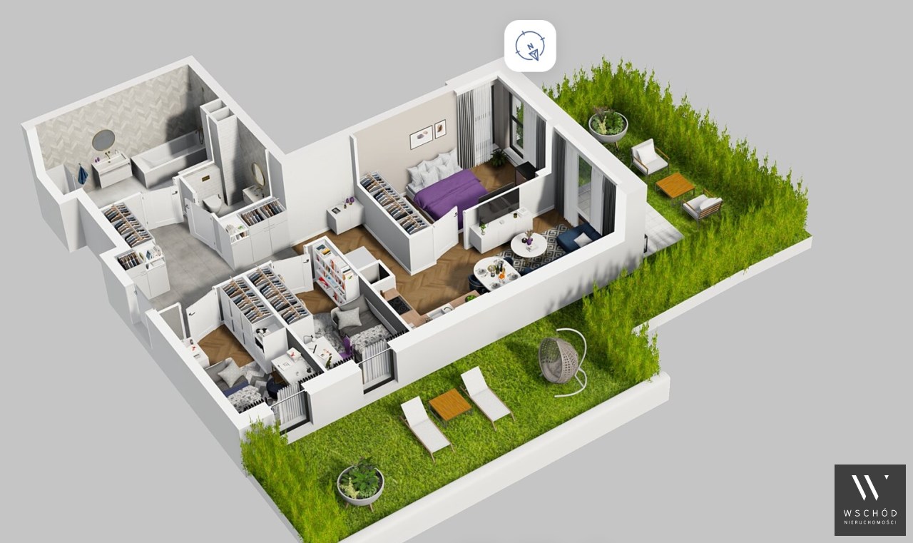 Mieszkanie składające się z salonu z aneksem kuchennym , trzech sypialni, łazienki , WC oraz ogródka o pow. 51m2.