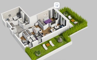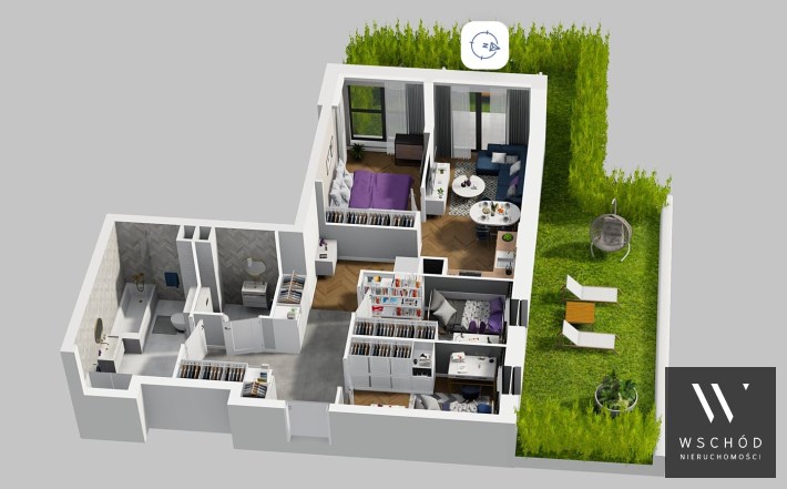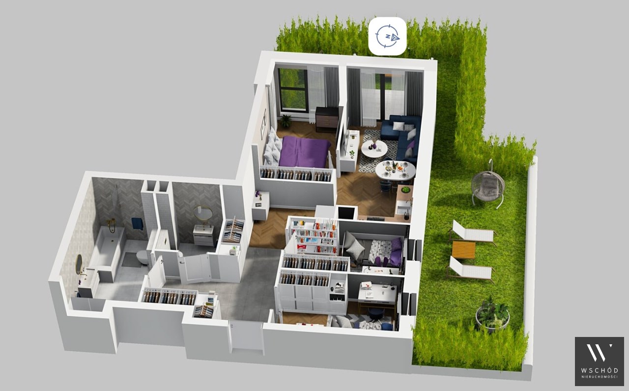 Mieszkanie składające się z salonu  z aneksem kuchennym , trzech sypialni, łazienki , WC oraz ogródka o pow. 51m2.