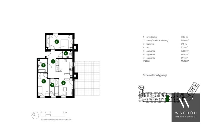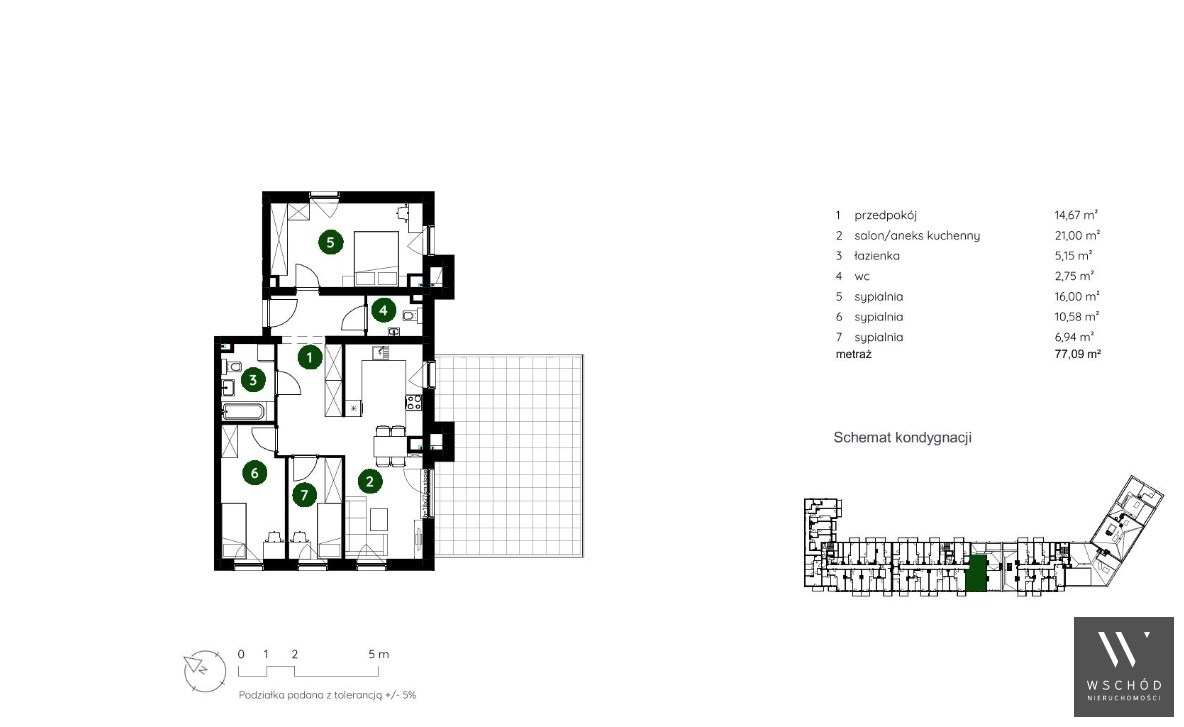 Powierzchnia użytkowa 77,09 m²