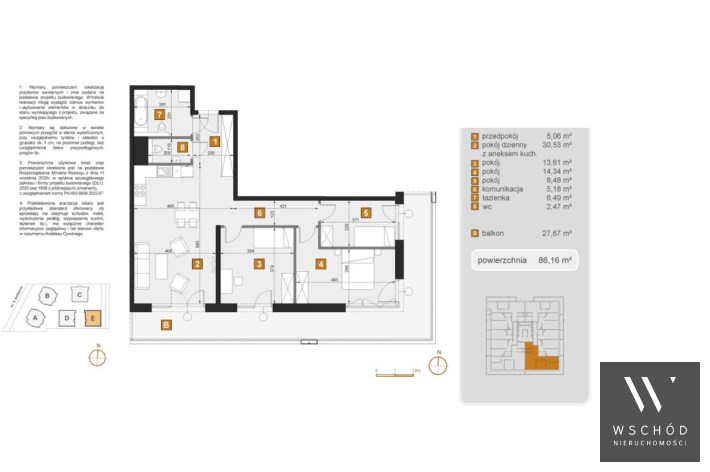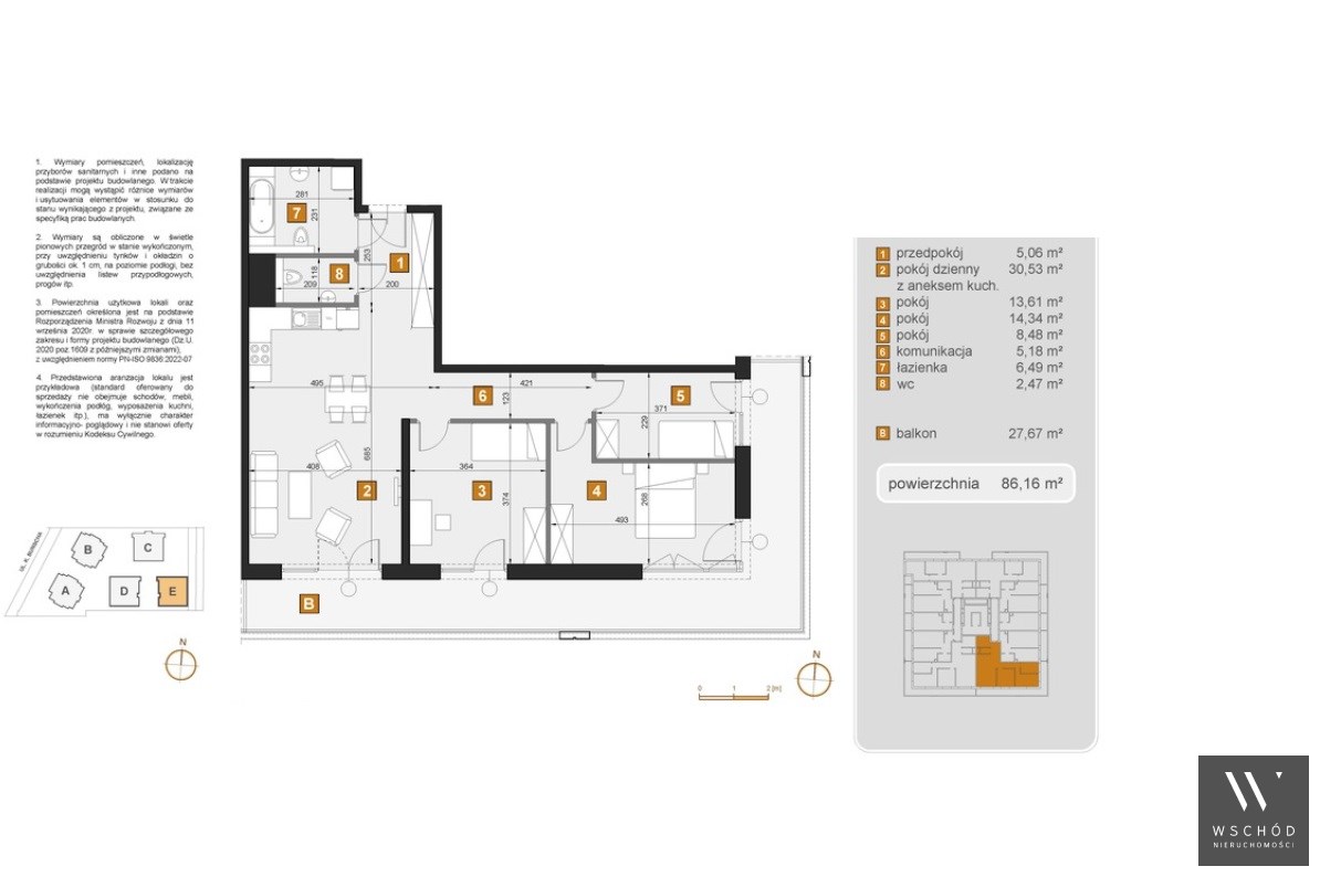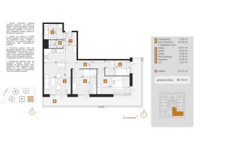 o pow. 86 m2 położone na 1 piętrze 5 piętrze bloku.