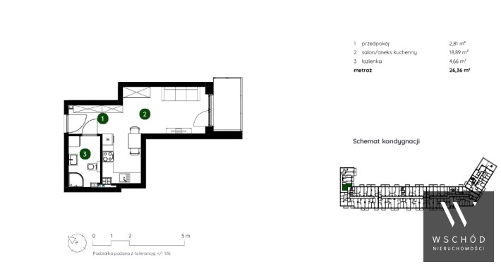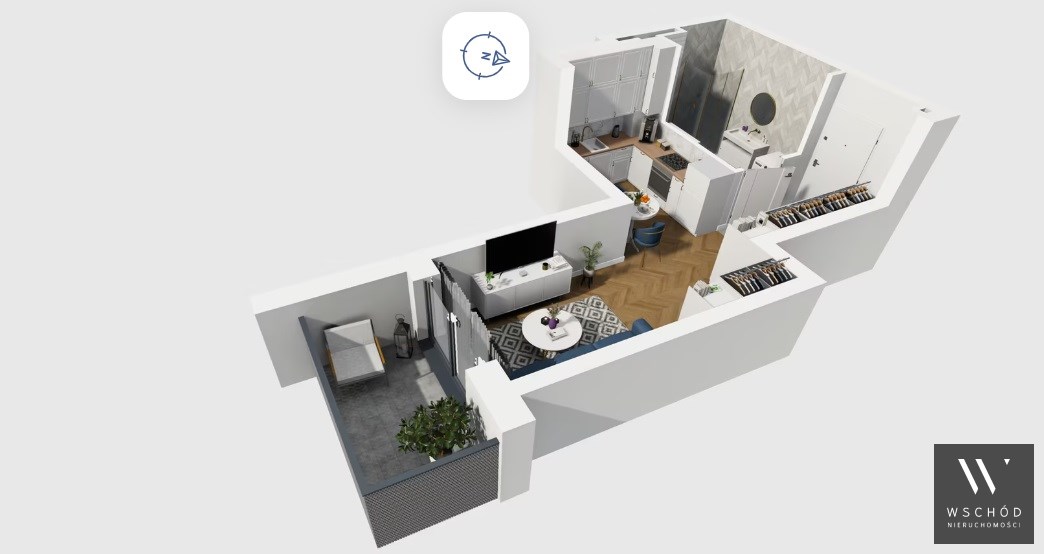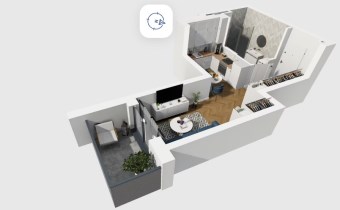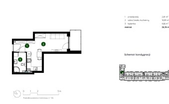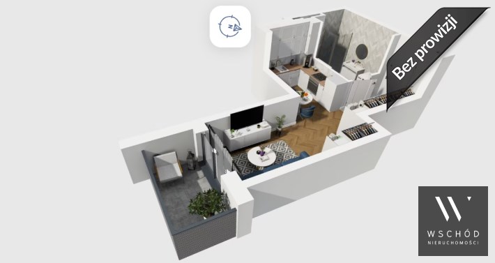 Mieszkanie składające się z kuchni, pokoju, łazienki oraz balkonu