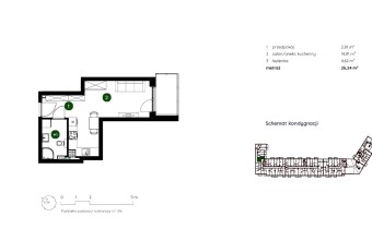 o pow. 26m2 położone na 3 piętrze 4 piętrowego bloku z windą.