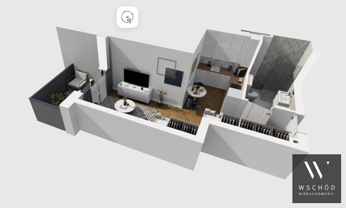 Mieszkanie składające się z kuchni, pokoju, łazienki oraz balkonu