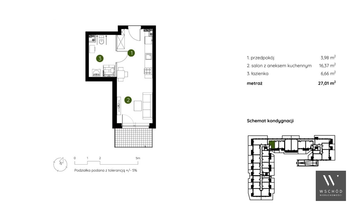 1 pokój 26,92 m2 18 450,00 zł/m2