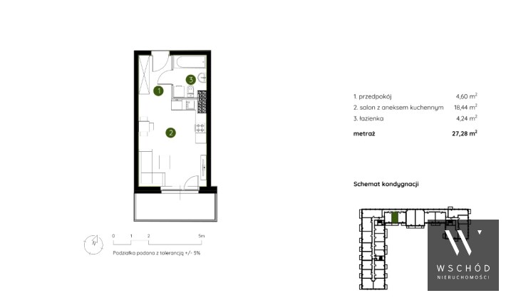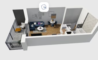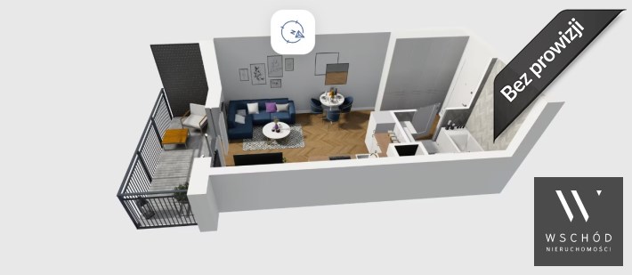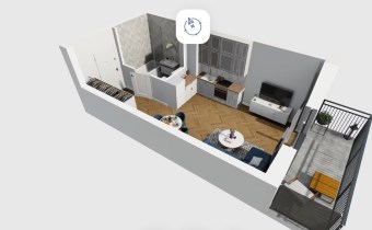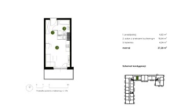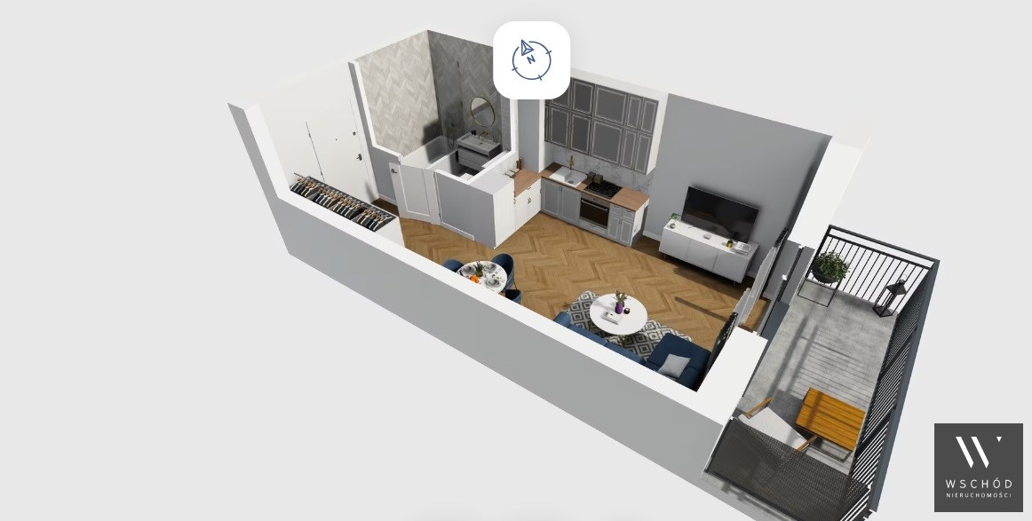 Mieszkanie składające się z salonu z aneksem kuchennym , przedpokoju, łazienki oraz balkonu