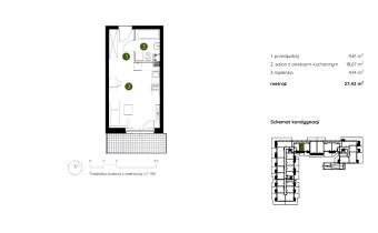 Mieszkanie składające się z pokoju z aneksem kuchennym ,przedpokoju, łazienki oraz ogródka o pow. 12m2