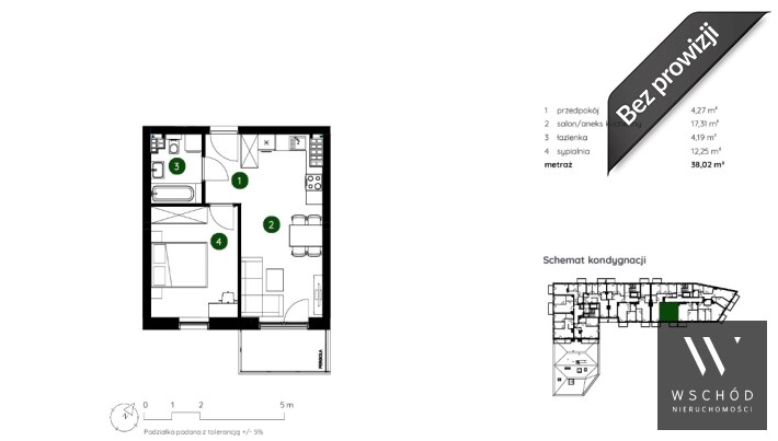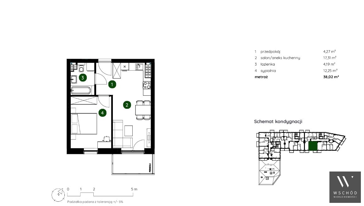 o pow. 38m2 położone na 4 piętrze 4 piętrowego bloku z windą.