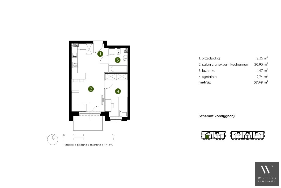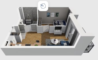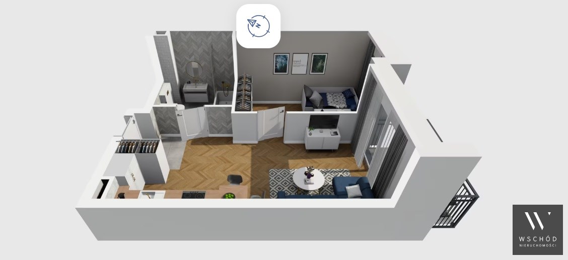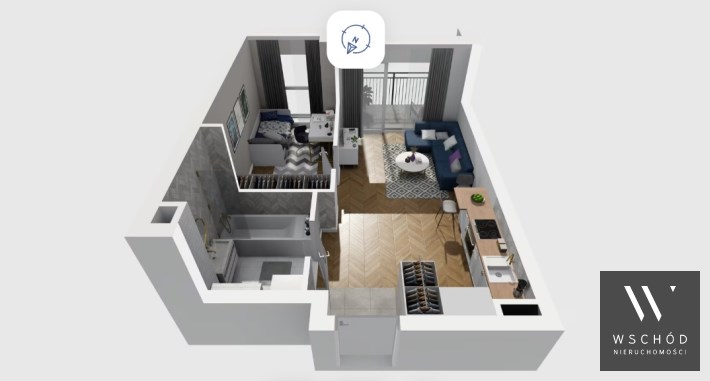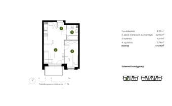 Mieszkanie składające się z salonu z aneksem kuchennym , sypialni, przedpokoju, łazienki oraz balkonu