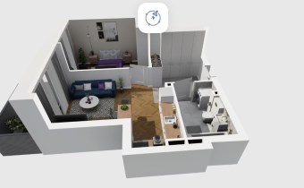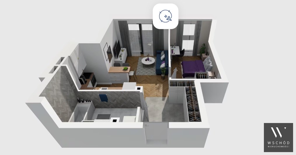 Mieszkanie składające się z salonu z aneksem kuchennym,  sypialni, przedpokoju, łazienki oraz balkonu