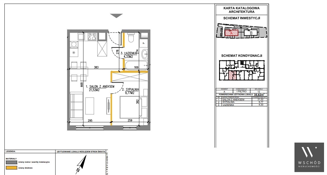 o pow. 35m2 położone na 1 pietrze 3 piętrowego bloku.