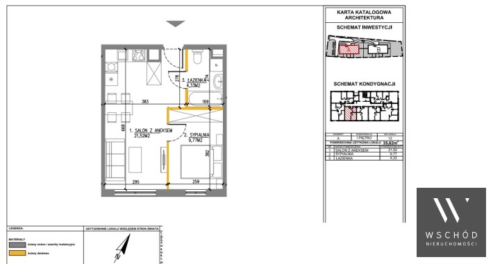 o pow. 35m2 położone na 1 pietrze 3 piętrowego bloku.