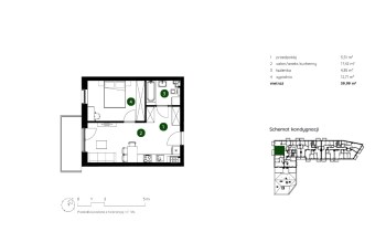 o pow. 39m2 położone na 3 piętrze 4 piętrowego bloku z windą.