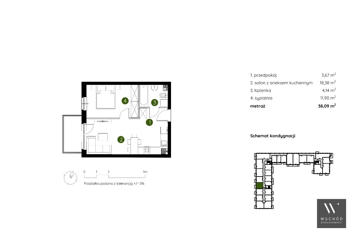 Mieszkanie składające się z salonu z aneksem kuchennym , sypialni, przedpokoju, łazienki oraz balkonu