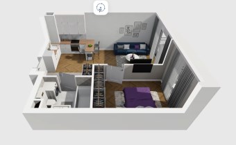 Mieszkanie składające się z salonu z aneksem kuchennym , sypialni, przedpokoju, łazienki  oraz balkonu