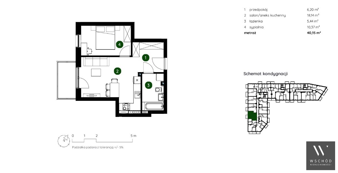 Powierzchnia użytkowa 40,15 m²