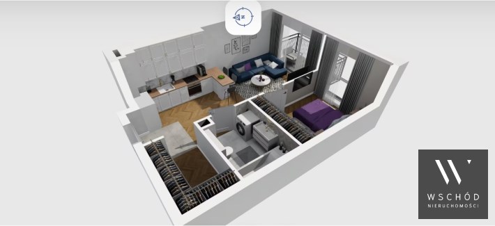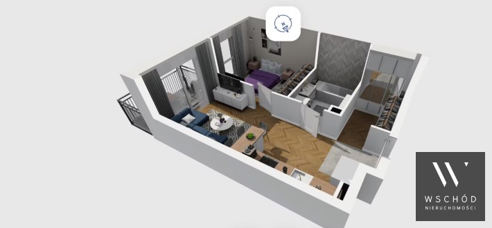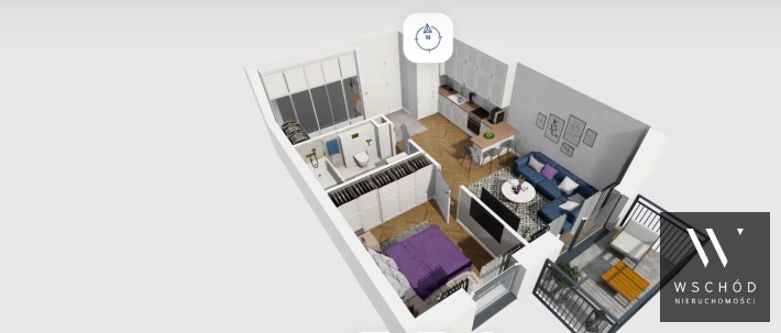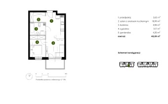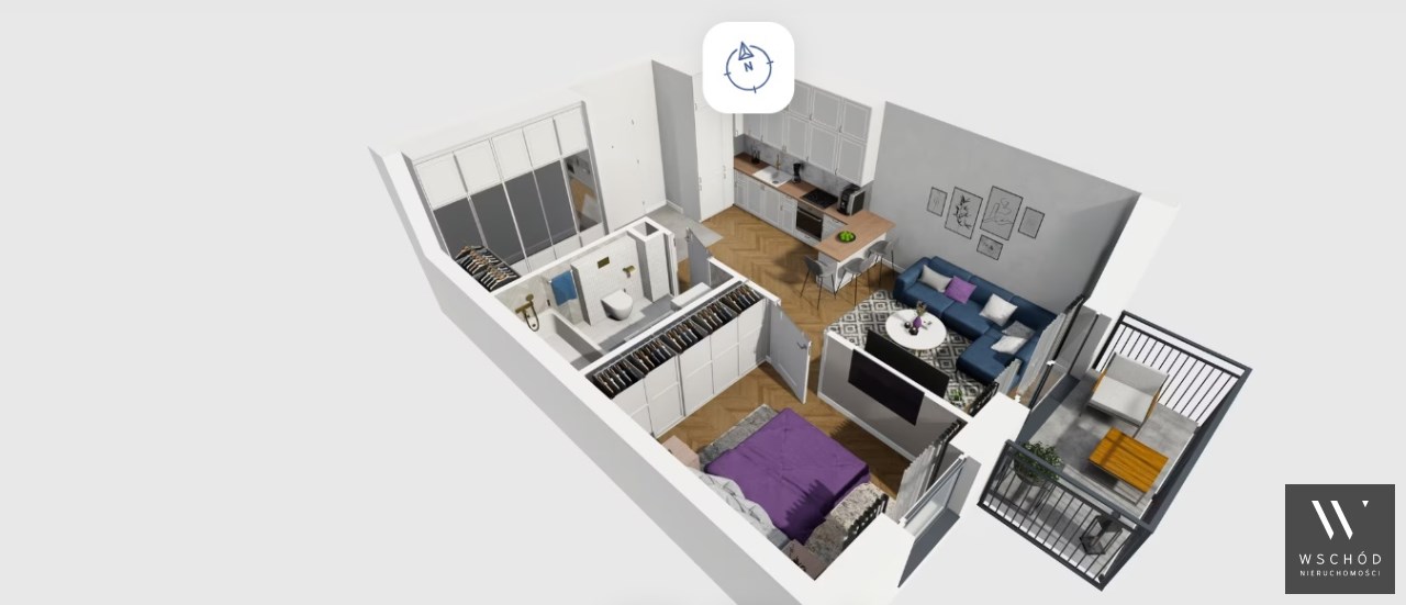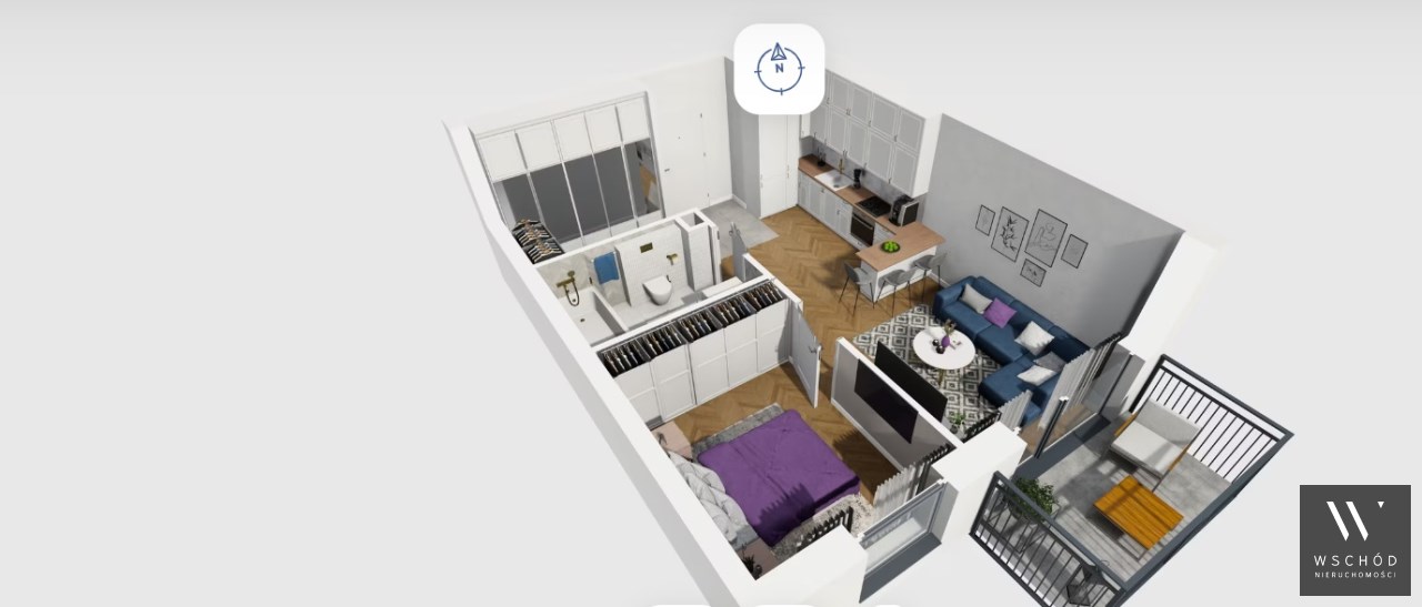 Mieszkanie składające się z salonu z aneksem kuchennym , sypialni, garderoby, przedpokoju, łazienki oraz balkonu