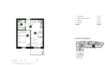 o pow. 38m2 położone na 4 piętrze 4 piętrowego bloku z windą.