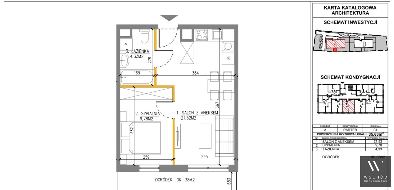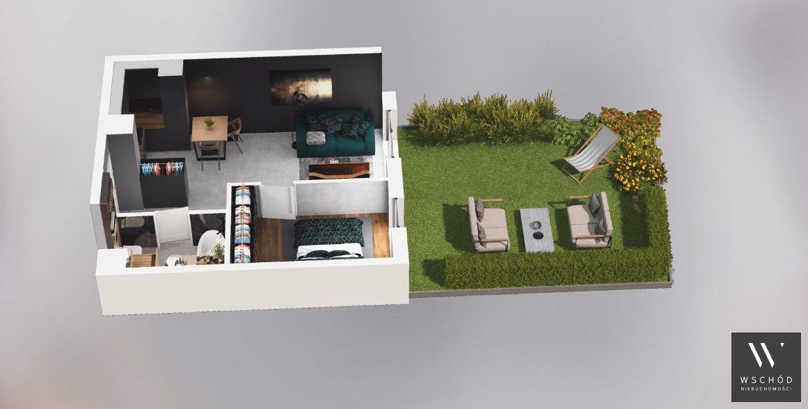 o pow. 35m2 położone na parterze 3 piętrowego bloku.