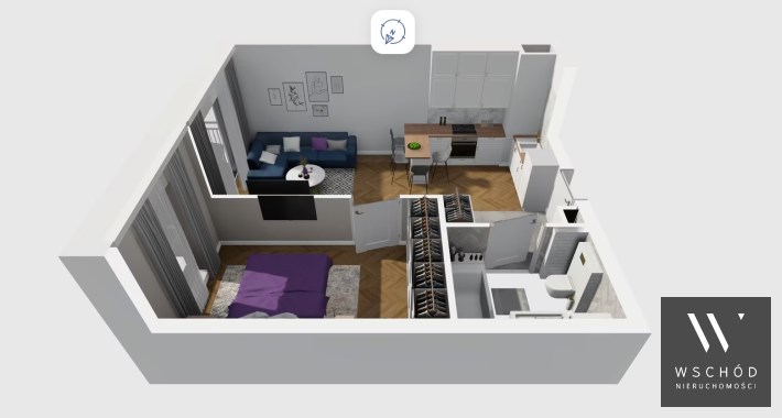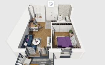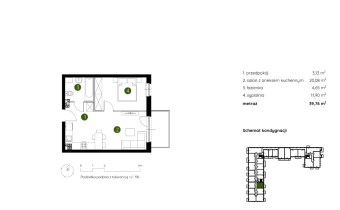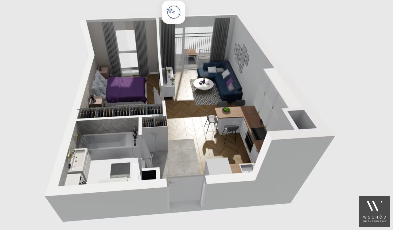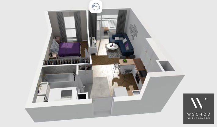 Mieszkanie składające się z salonu z aneksem kuchennym , sypialni, przedpokoju, łazienki oraz balkonu