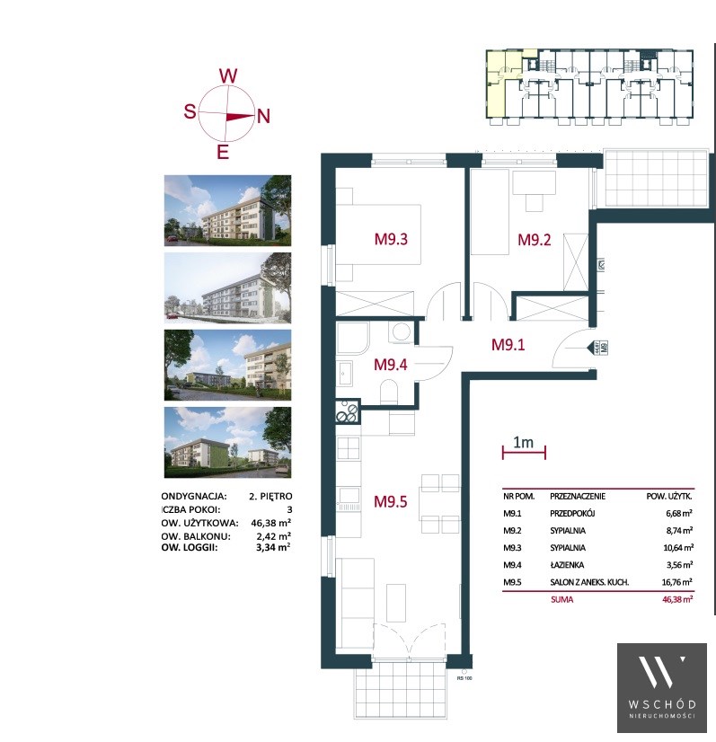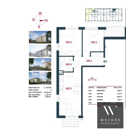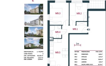 ustawne 3 pokojowe mieszkanie o pow. 46m2 położone na 3 piętrze 3 piętrowego bloku z windą.