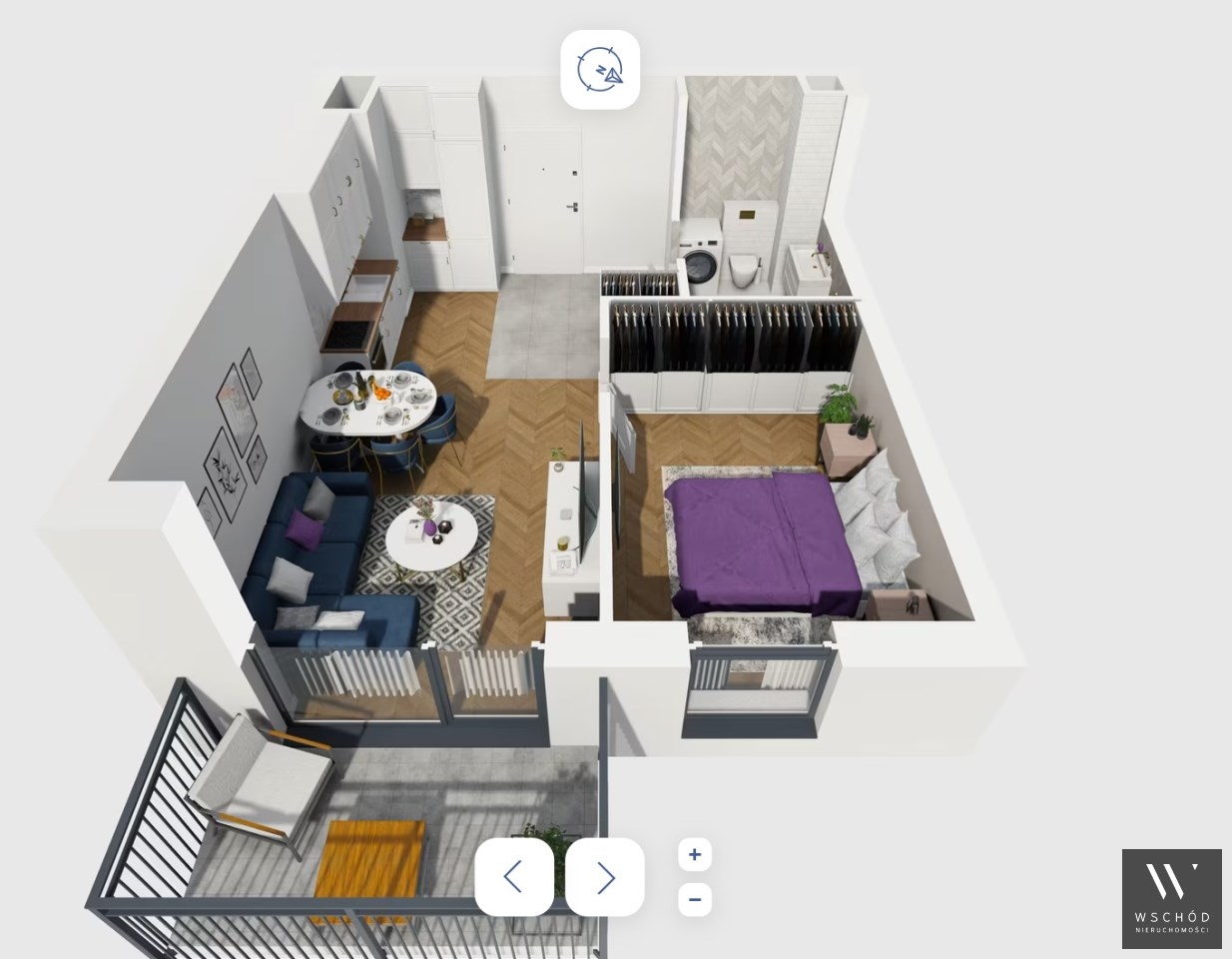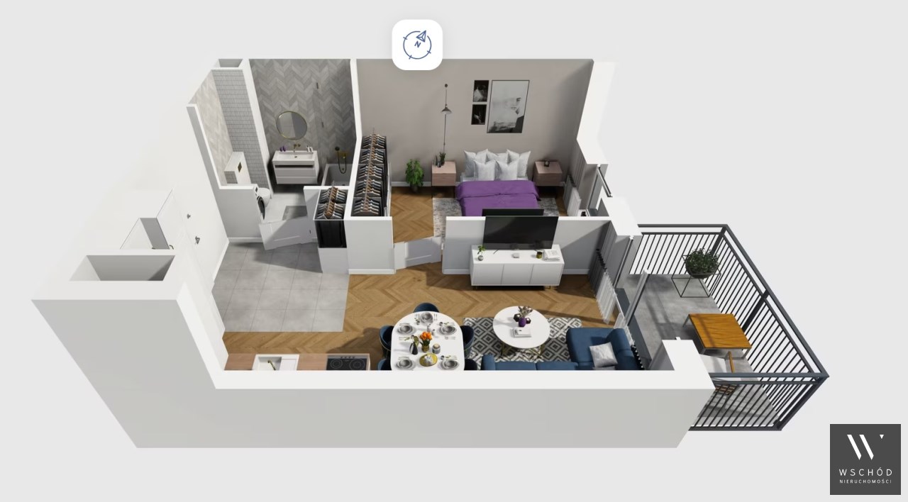Mieszkanie składające się z salonu z aneksem kuchennym ,sypialni, przedpokoju, łazienki, oraz balkonu