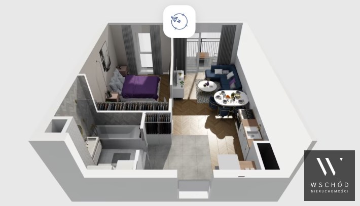Mieszkanie składające się z salonu z aneksem kuchennym , sypialni, przedpokoju, łazienki, oraz balkonu