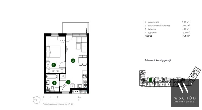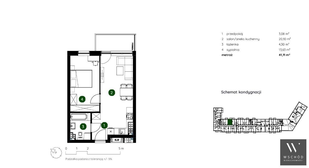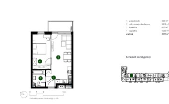 o pow. 41m2 położone na 4 piętrze 4 piętrowego bloku z windą.