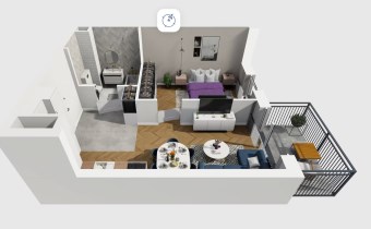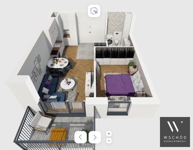 Mieszkanie składające się z salonu z aneksem kuchennym ,sypialni, przedpokoju, łazienki, oraz balkonu