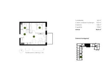 Mieszkanie składające się z salonu z aneksem kuchennym , sypialni, przedpokoju, łazienki, oraz balkonu