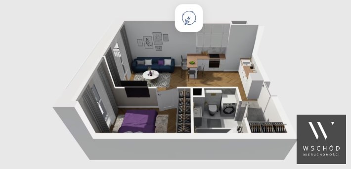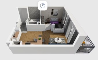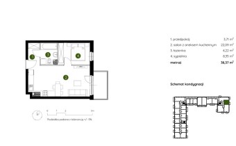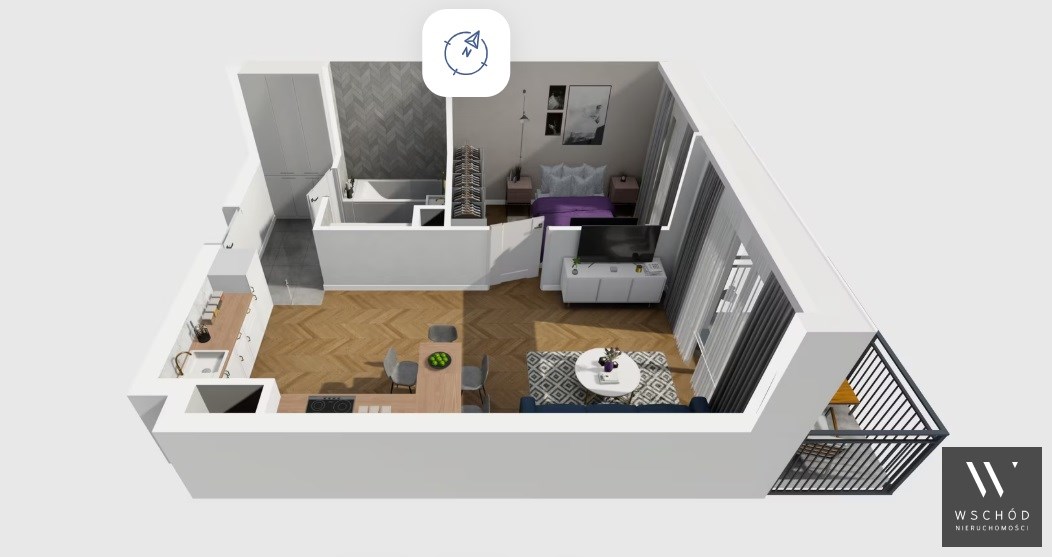 Mieszkanie składające się z salonu z aneksem kuchennym , sypialni, przedpokoju, łazienki oraz balkonu