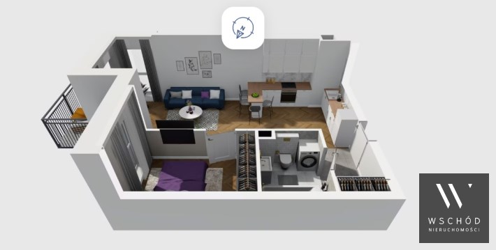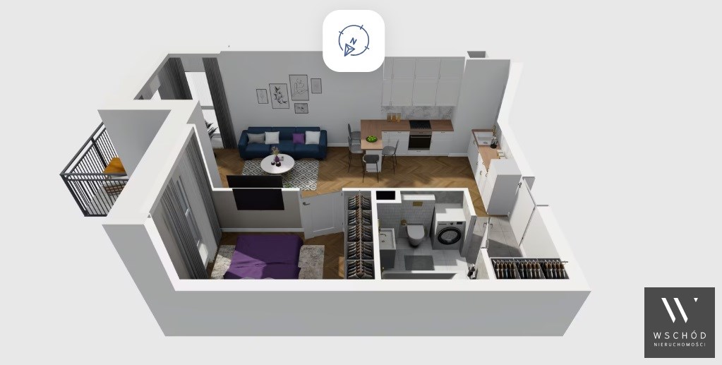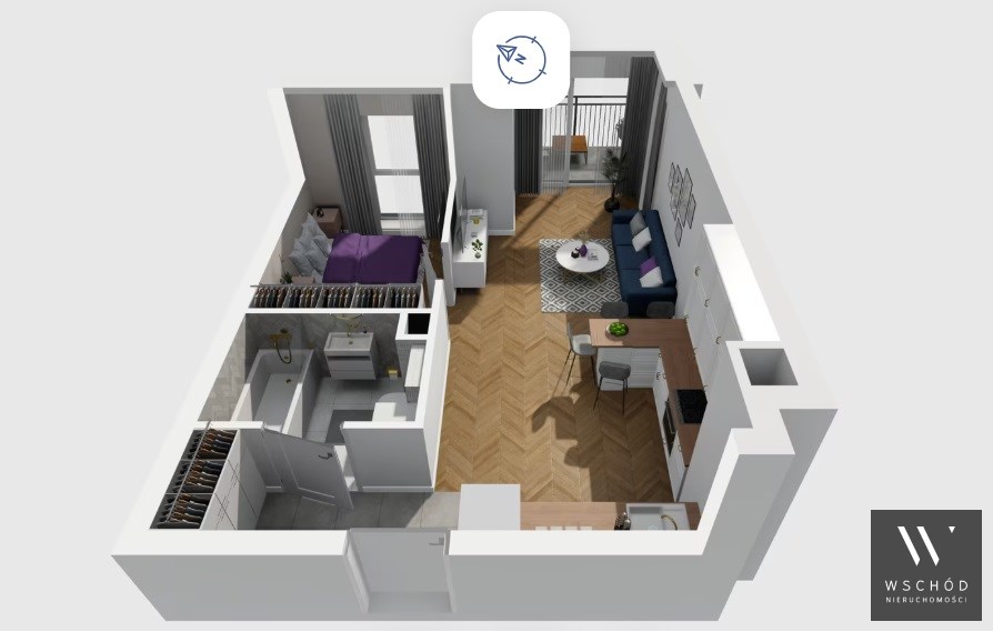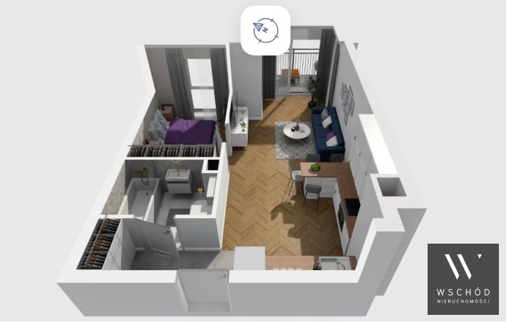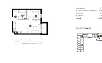 Mieszkanie składające się z salonu z aneksem kuchennym , sypialni, przedpokoju, łazienki, oraz balkonu