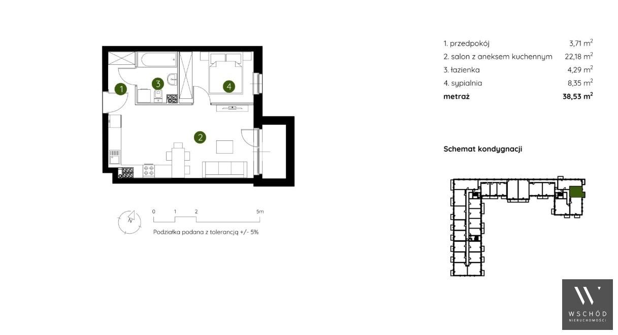 - Ekspozycja okien: północny wschód