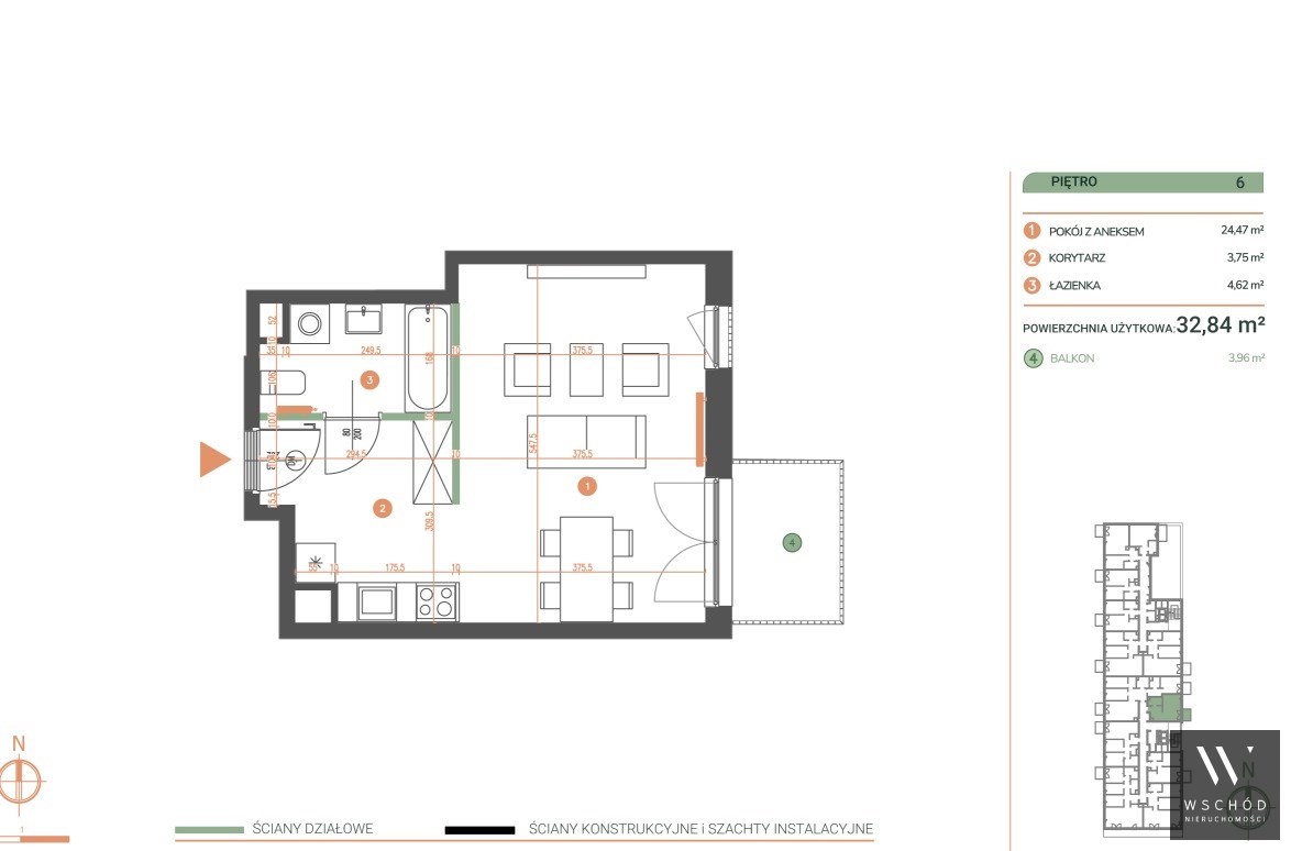- Ekspozycja okien: wschód