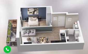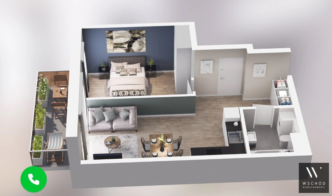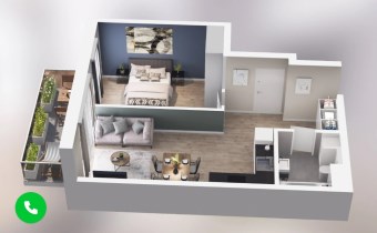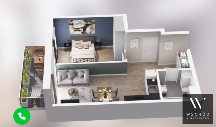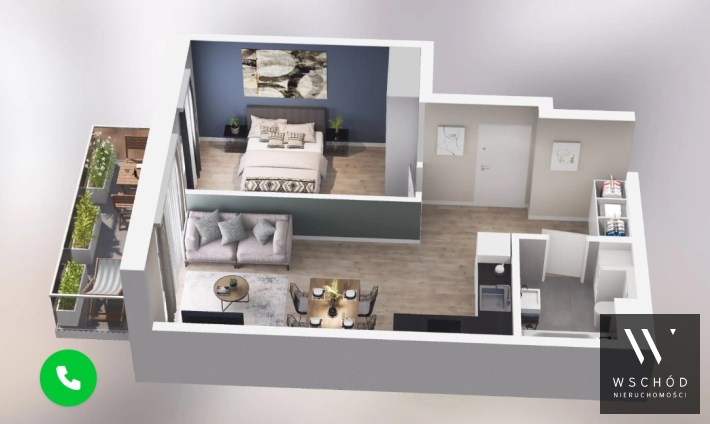 Mieszkanie składające się z salonu z aneksem kuchennym,  sypialni, przedpokoju, łazienki oraz balkonu