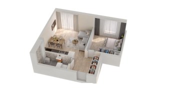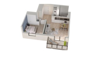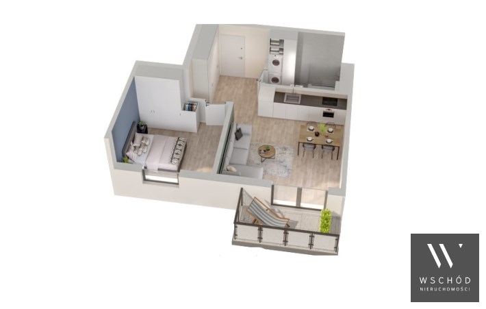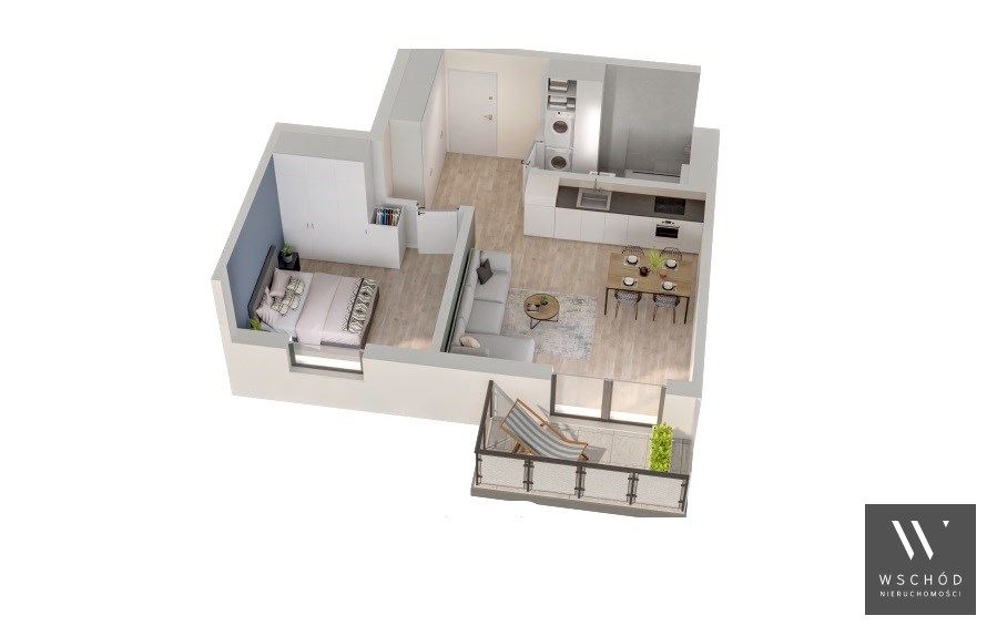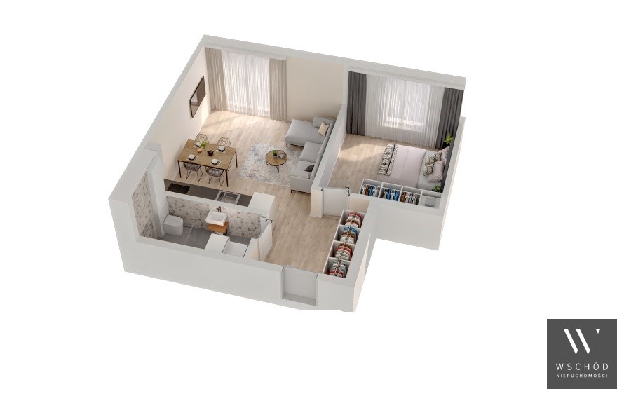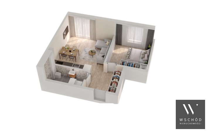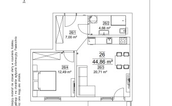Mieszkanie składające się z salonu z aneksem kuchennym , sypialni, przedpokoju, łazienki oraz