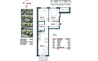 Mieszkanie składające się z salonu z aneksem kuchennym, dwóch sypialni, przedpokoju, łazienki oraz balkonu