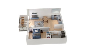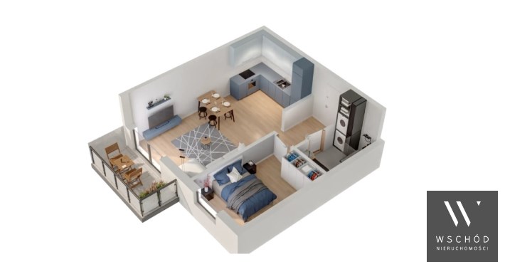 Mieszkanie składające się z salonu z aneksem kuchennym , sypialni, przedpokoju, łazienki oraz balkonu