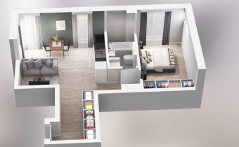 Mieszkanie składające się z salonu z aneksem kuchennym,  sypialni, przedpokoju, łazienki oraz balkonu