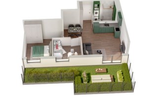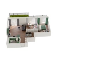 Mieszkanie składające się z salonu z aneksem kuchennym , dwóch sypialni, przedpokoju, łazienki oraz