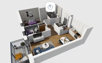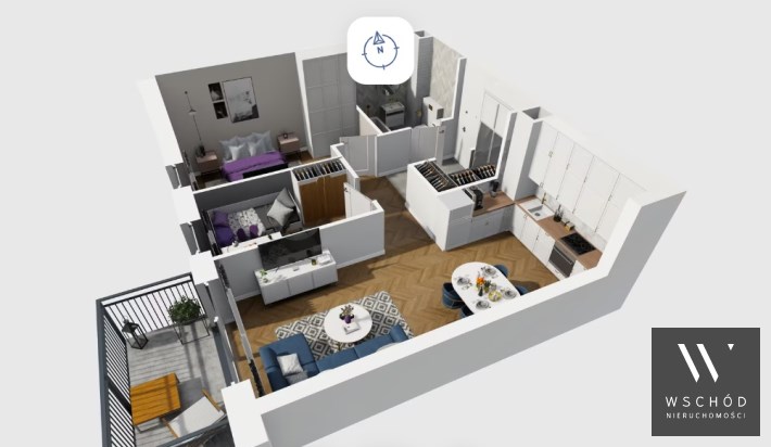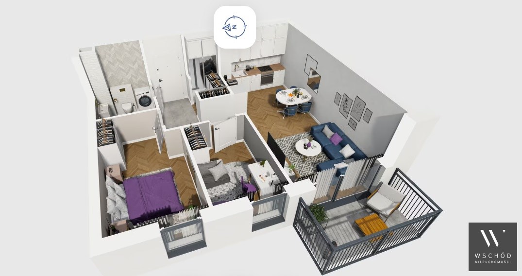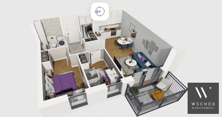 Mieszkanie składające się z salonu z aneksem kuchennym , dwóch sypialni, przedpokoju, łazienki, oraz balkonu