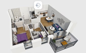Mieszkanie składające się z salonu z aneksem kuchennym , dwóch sypialni, przedpokoju, łazienki, oraz balkonu