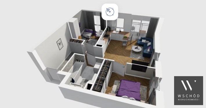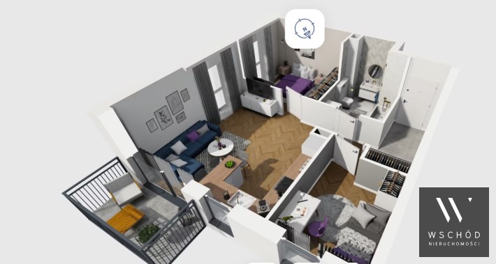 Mieszkanie składające się z salonu z aneksem kuchennym , dwóch sypialni, przedpokoju, łazienki oraz balkonu