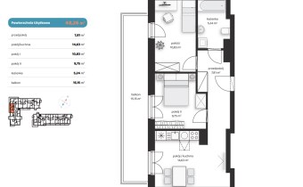 Mieszkanie składające się z małego salonu z kuchnią, dwóch sypialni, przedpokoju, łazienki oraz dużego balkonu o pow. 15m2