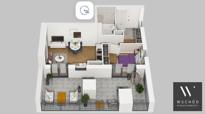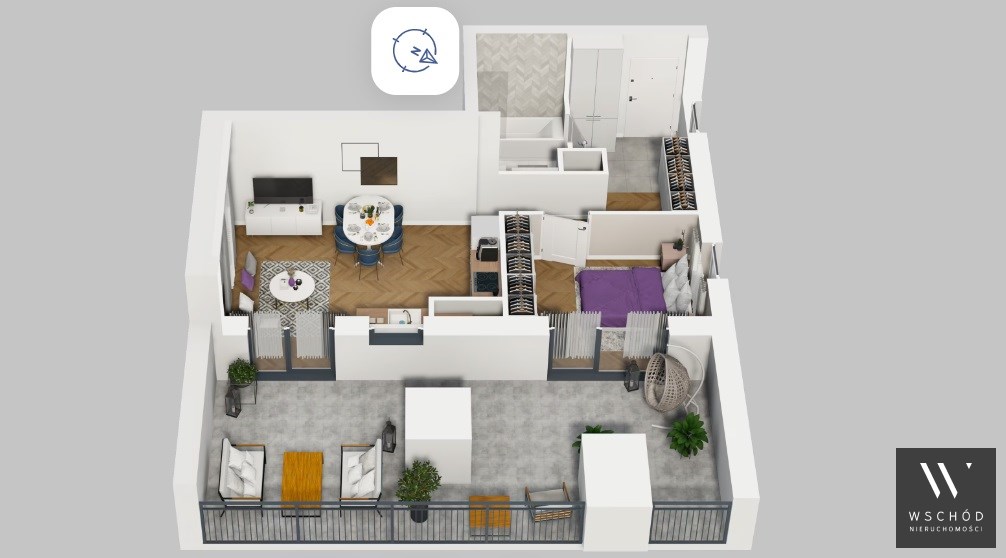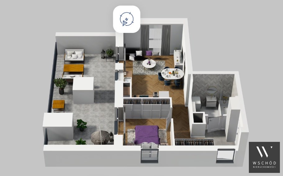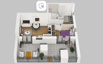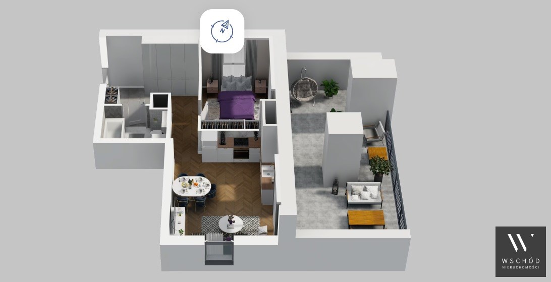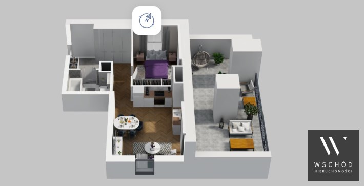 Mieszkanie składające się z salonu z aneksem kuchennym , sypialni, przedpokoju, łazienki oraz tarasu