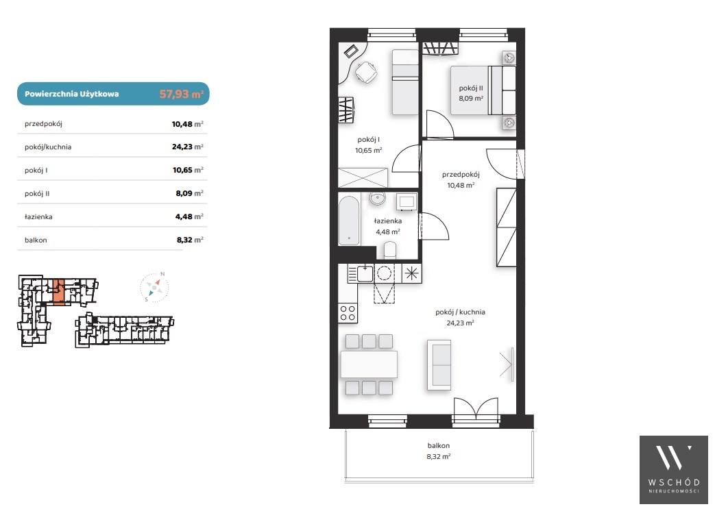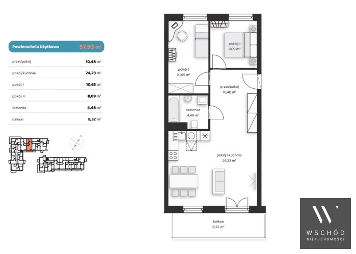 - Ekspozycja okien: południowy wschód / północny zachód