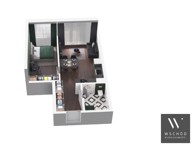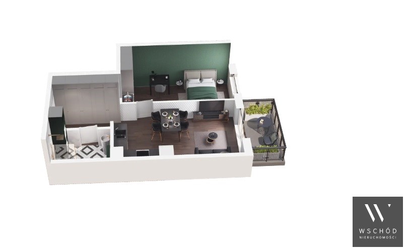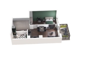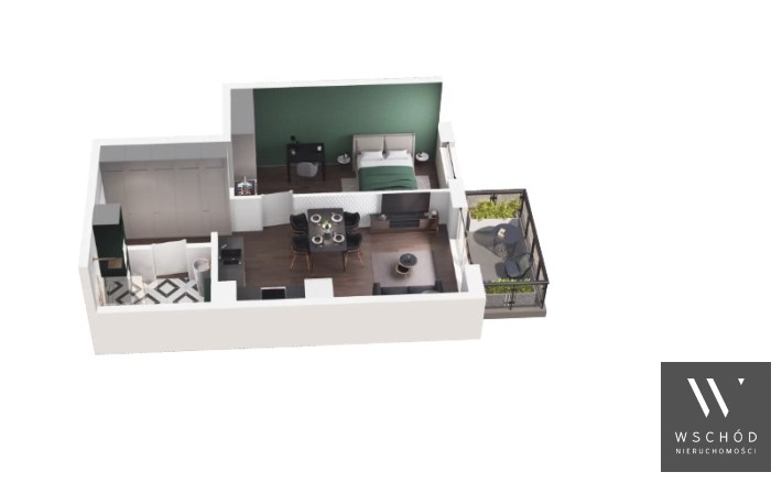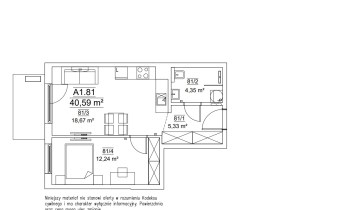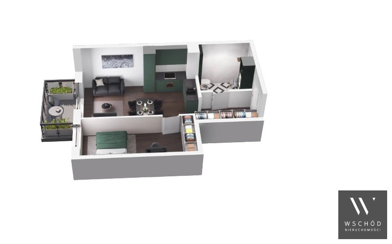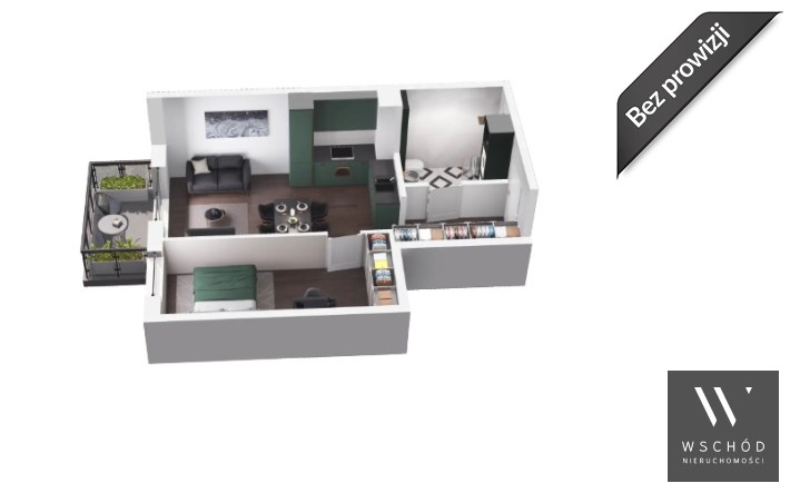 Mieszkanie składające się z salonu z aneksem kuchennym, sypialni , przedpokoju, łazienki oraz balkonu
