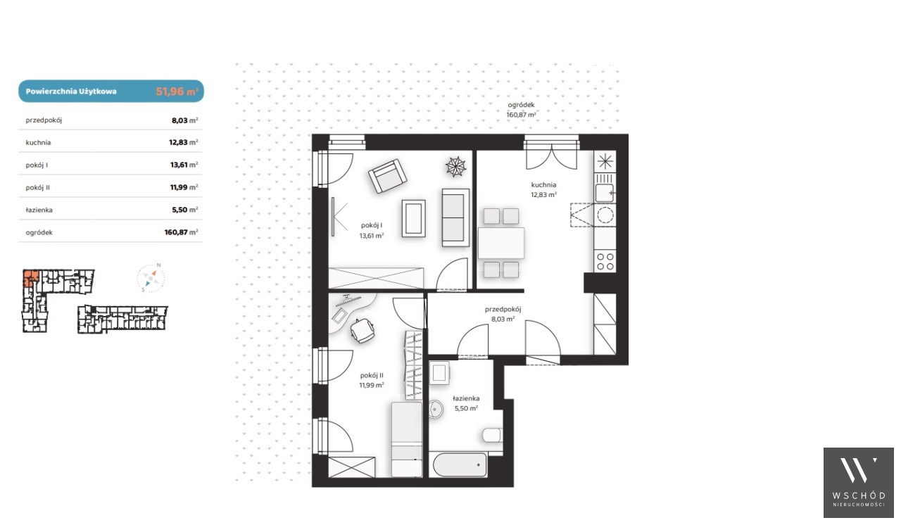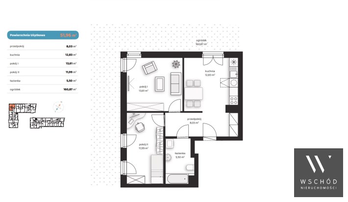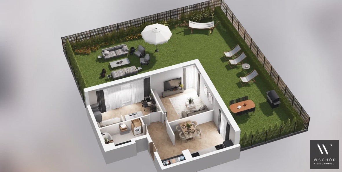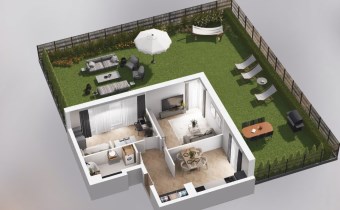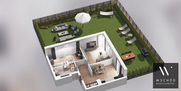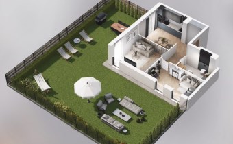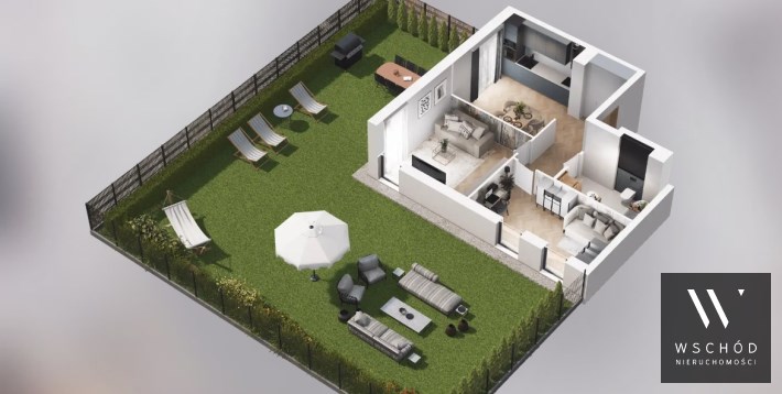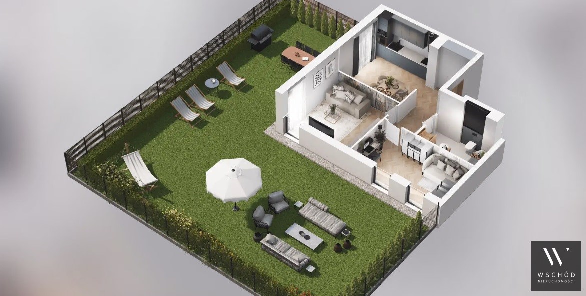 Mieszkanie składające się z kuchni, dwóch sypialni, przedpokoju, łazienki oraz ogródka o pow. 160m2